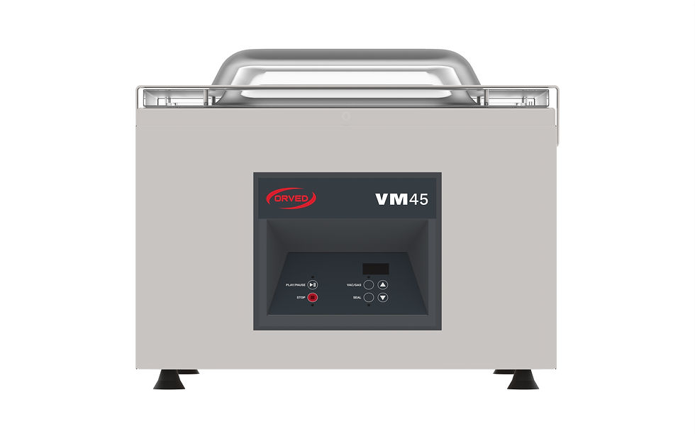 The VM Series models made entirely of AISI304 stainless steel, with digital control panel and standard absolute vacuum sensor, it is characterized by ease of use and compact design. Its versatility makes it possible to pack the products in the chamber, in external containers via the suction device and in embossed envelopes outside the chamber. Easy Maintenance and cleaning make it a precise, fast, versatile and a reliable vacuum packing machine.